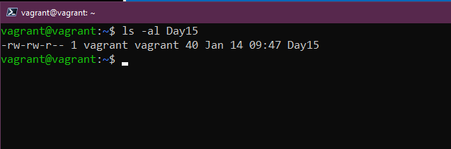 Vậy còn nếu muốn thay đổi chủ của tập tin? Chúng ta có thể sử dụng chown cho thao tác này, nếu muốn thay đổi quyền sở hữu của Day15 từ người dùng vagrant thành NewUser, chúng ta có thể chạy lệnh sudo chown NewUser Day15 và một lần nữa -R có thể sử dụng để làm điều này một cách đệ quy.