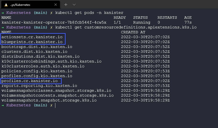 Kanister cung cấp một CLI, kanctl và một tiện ích khác kando được sử dụng để tương tác với nhà cung cấp lưu trữ đối tượng của bạn từ blueprint và cả hai tiện ích này.
